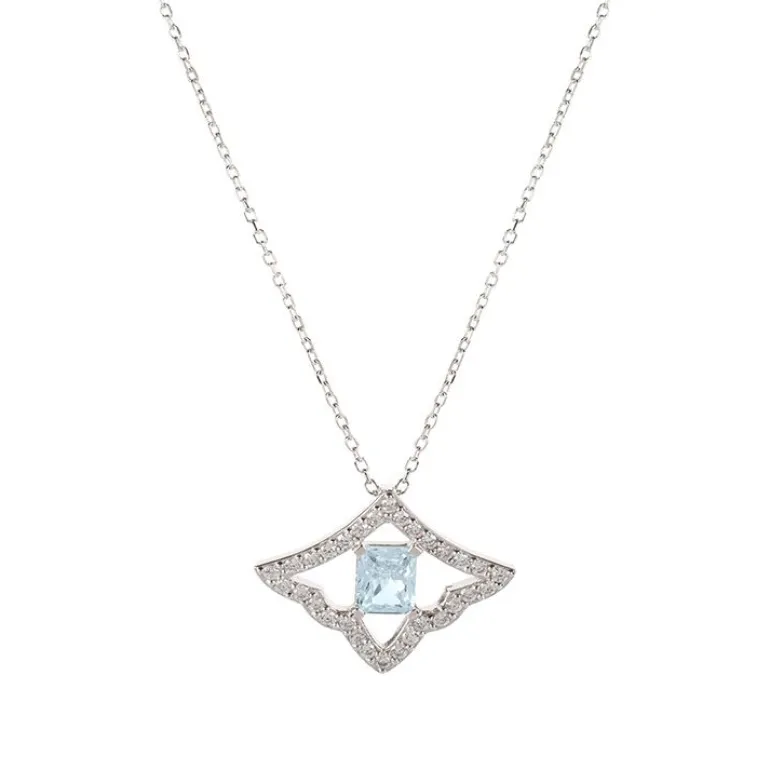 This Delicate Necklace Is Hallmarked Sterling Silver And Complete With A Cubic Zirconia Crystal And A Blue Topaz Centred Pendant.