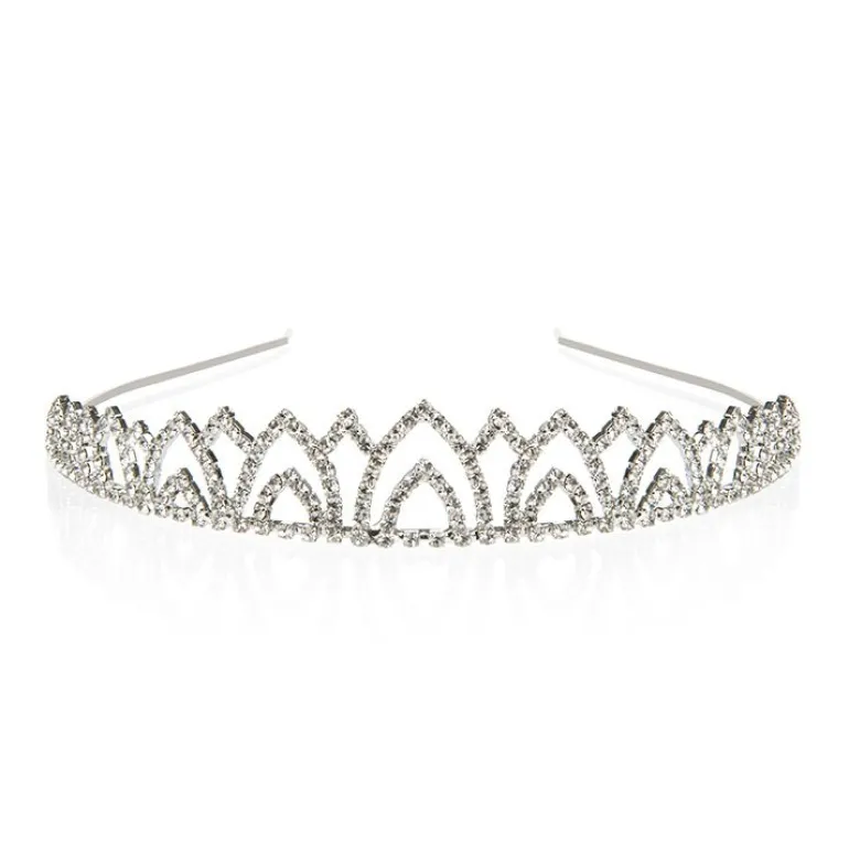 A Delicate Tiara With Arch Shape Details And Sparkling Crystals, Set Into A Base Metal Plated With White Gold.