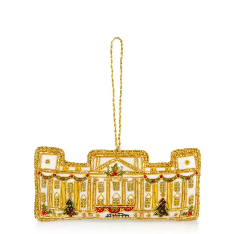 Crafted By Hand Using Luxurious White Velvet And Sparkling Crystals, This Exquisite Decoration Is Finished Using Traditional Zardozi Techniques, An Extravagant Form Of Embroidery Which Uses Golden Threads.