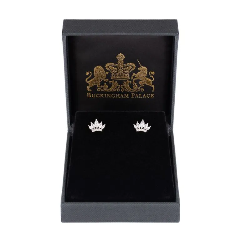 This Delicate Pair Of Earrings Is Inspired By The Iconic Crowns In The Royal Collection. Each Earring Is Set With 5 Glittering Marquise Cut Cubic Zirconia Stones Supported By 5 Brilliant Cut Stones In The Band Of The Crown.