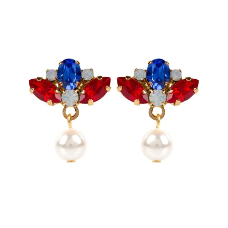 These Statement Earrings Are Made Of Gold Plated Brass, Sparkling Crystal And Bright Pearls.