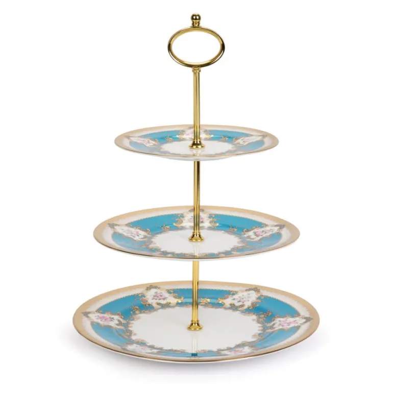 Complete Your Afternoon Tea Table Set Up With This Fabulous 3 Tier Cake Stand. Inspired By The Beautiful Hand Painted Plates Found In Buckingham Palace’S Royal China Pantry, This Cake Stand Is Elegantly Decorated With The Coat Of Arms Of King George Iv And King William Iv Surrounded By A Luxurious Turquoise Blue And Finished 22 Carat Gold Detail And Accents Of Blush Pink English Roses.